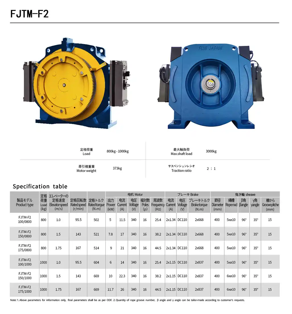 FUJI JAPAN Traction Machine represents the pinnacle of Japanese engineering in elevator technology. Designed for both machine-room and machine-room-less (MRL) applications, these machines are renowned for their compact design, energy efficiency, and low noise operation. Utilizing permanent magnet synchronous motors, FUJI traction machines eliminate the need for gearboxes, resulting in a direct drive system that reduces mechanical complexity and maintenance requirements. This gearless design not only enhances reliability but also contributes to a quieter and more comfortable ride.